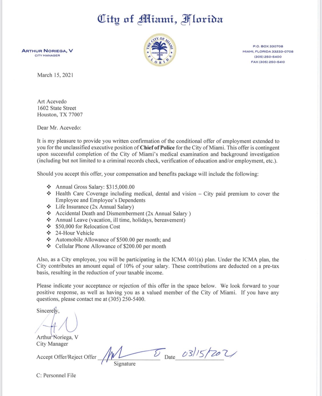 MIAMI AP Art Acevedo the Houston police chief who forged a national profile by calling for gun control marching with protesters after George Floyds death and criticizing. Miami Police Chief Art Acevedo who is under a gag order submitted a new plan to City Manager Art Noriega to deal with issues raised during recent commission meetings. A salary starting at 315000 a year with five percent annual increases and a 700 monthly allowance to oversee the citys 1400 sworn police.